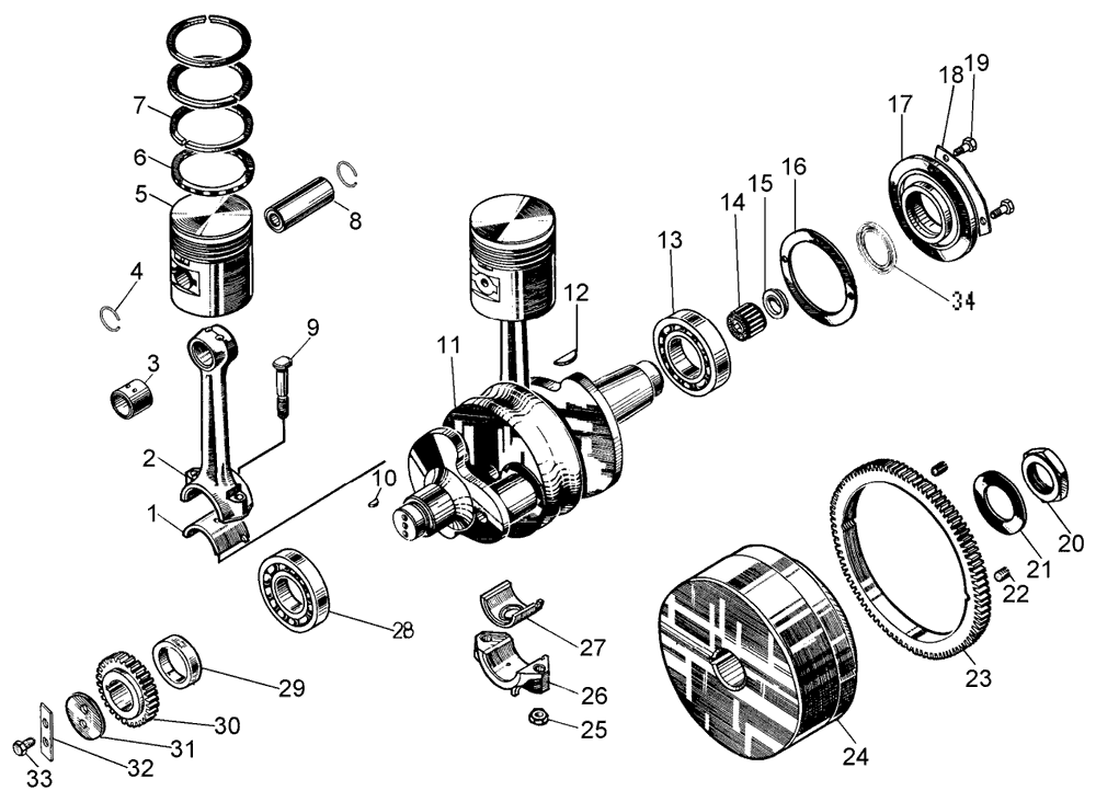 Кривошипно-шатунный механизм пускового двигателя