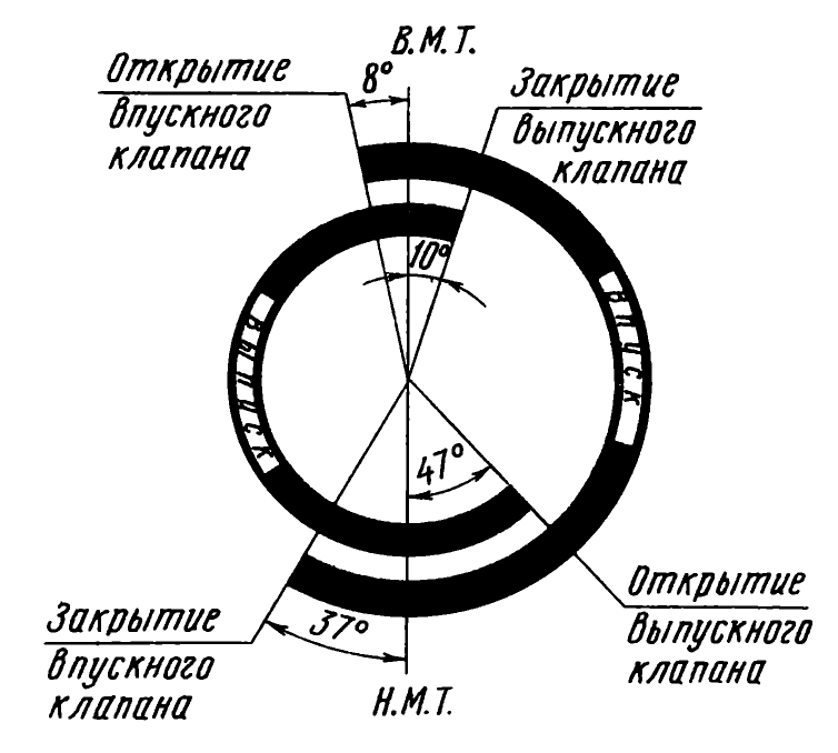 А = 24 ± Iе (для дизеля Д-160) н 23±1° (для дизеля Д-160Б) — смешение метки ВМТ-1-4Ц на маховике относительно указателя,