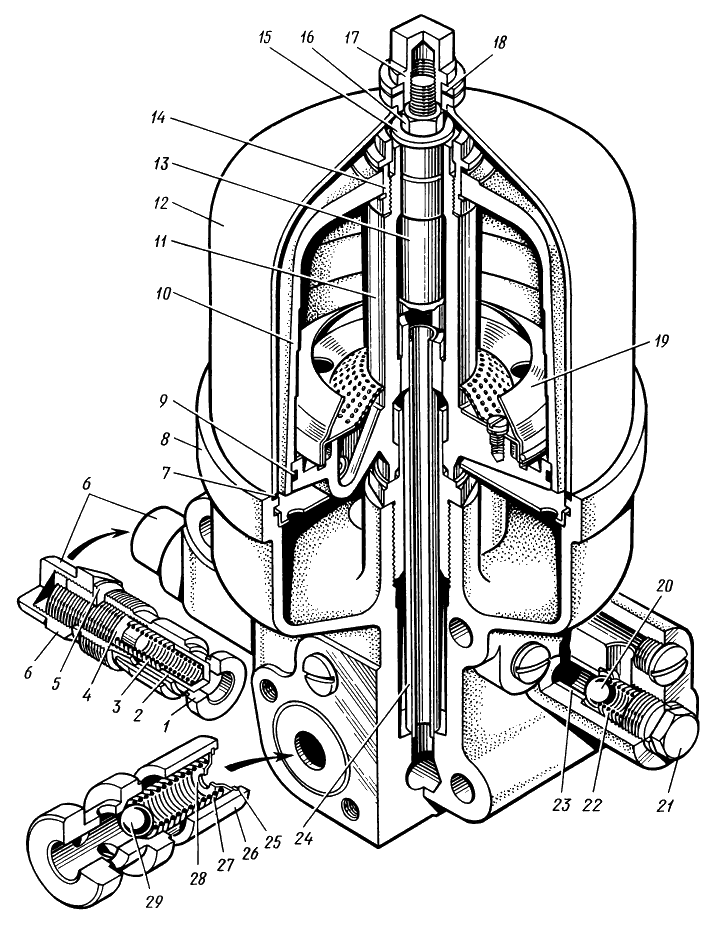 Велик зазор между стержнями всасывающих клапанов и направляющими втулками Заменить клапаны или втулки или то и другое