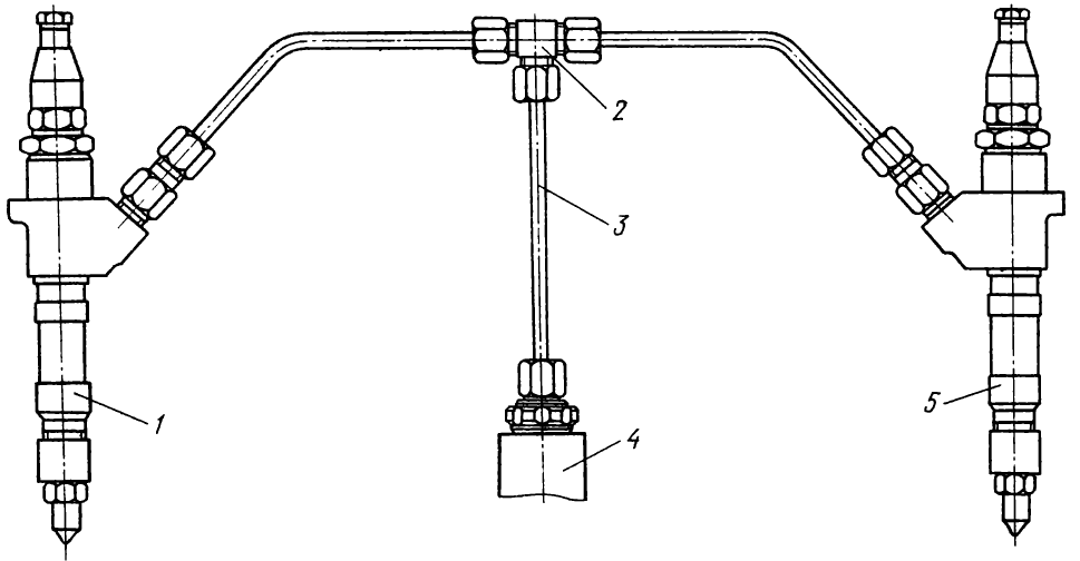 После проверки момента начала подачи топлива и его регулировки необходимо проверить работу автоматического отключения второго и третьего цилиндров. Эта проверка осуществляется следующим образом. При работе двигателя на холостых оборотах отсоединяют трубки высокого давления от II и III секций. Если подачи топлива нет через обратные клапаны, то отключенные секции работают нормально; если подача есть, необходимо убедиться в отсутствии подачи топлива через форсунки. Для этого форсунку, отрегулированную на давление 19,6 МПа (200 кгс/см²), поочередно присоединяют ко II и III секциям; если при работе двигателя на холостых оборотах подачи топлива через форсунку нет, то отключенные секции работают нормально.