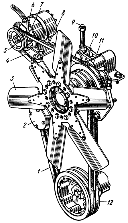 Слабо натянуты или изношены ремни вентилятора Отрегулировать натяжение ремней или заменить их