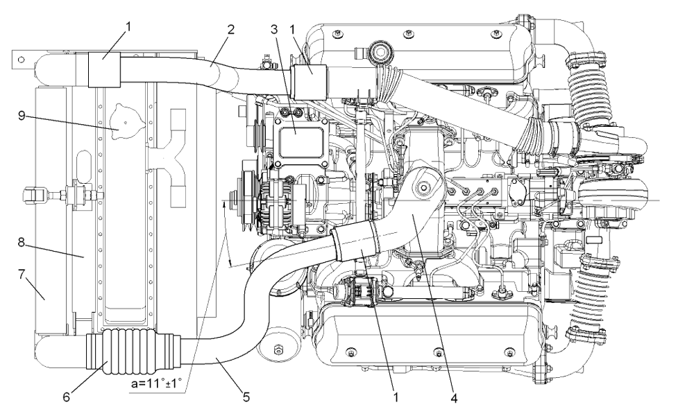 2 - трасса подвода воздуха от турбокомпрессора к ОНВ;